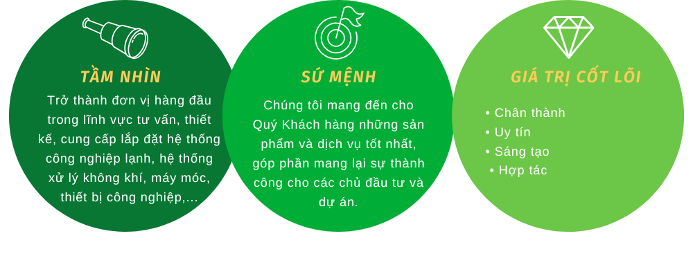 Phát triển Công ty trở thành một trong những Công ty có lĩnh vực tư vấn, thiết kế, thi công lắp đặt hệ thống kết cấu cơ khí, điện, hệ thống lạnh... hàng đầu miền Nam, trên toàn quốc và khu vực.